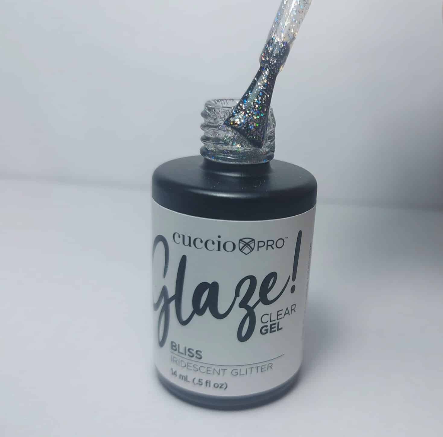 Cuccio Glaze 14ml Bliss – a holographic glitter topper.