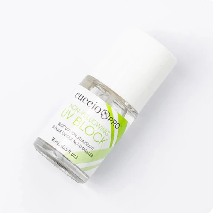 Keep your manicure salon fresh with Cuccio Pro Non-Yellowing UV Block. This professional-grade top coat acts as a protective shield for acrylics and gels, using advanced UV-blocking technology to prevent yellowing and discoloration caused by sun exposure.